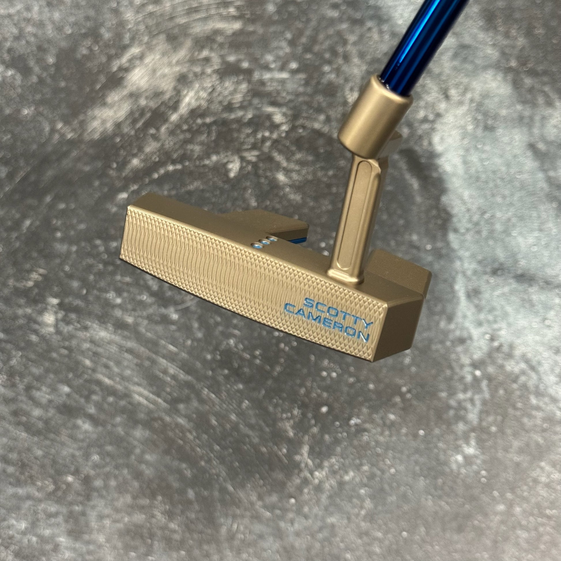 Scotty Cameron Phantom 5.2 in our Chromatic Bronze finish with a Blue Sole Plate and Blue shaft!