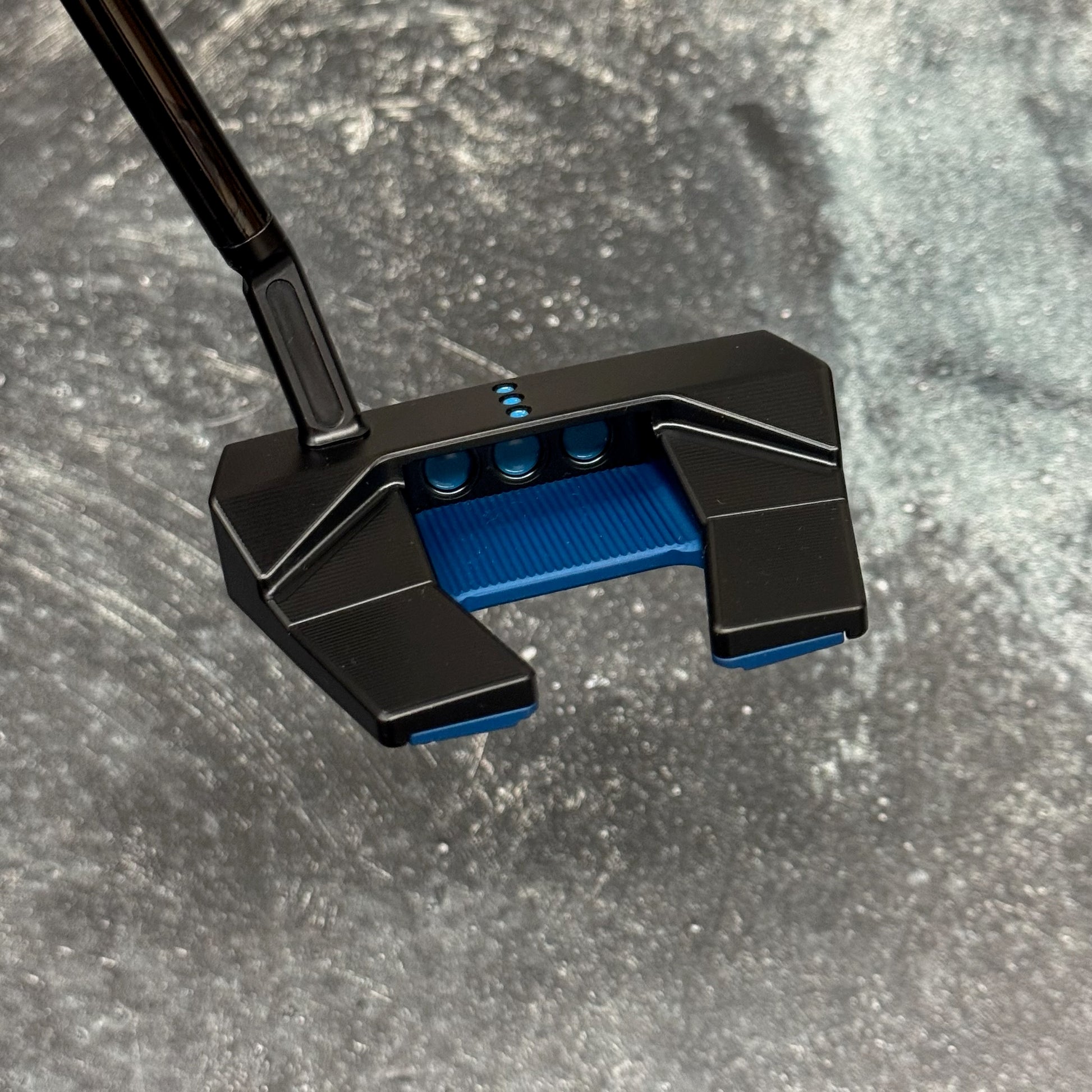 Scotty Cameron Phantom 5.5 finished in our Black PVD finish with a Blue Anodized sole plate. Comes with a smoke Black shaft!