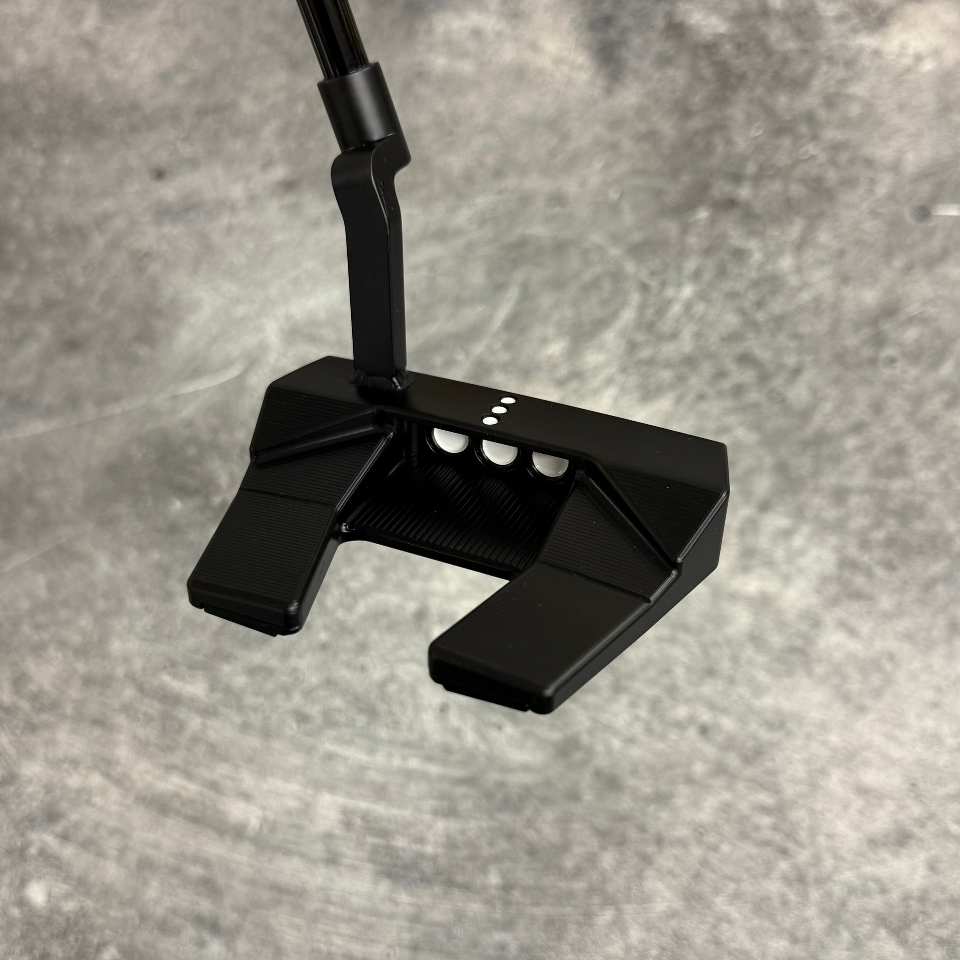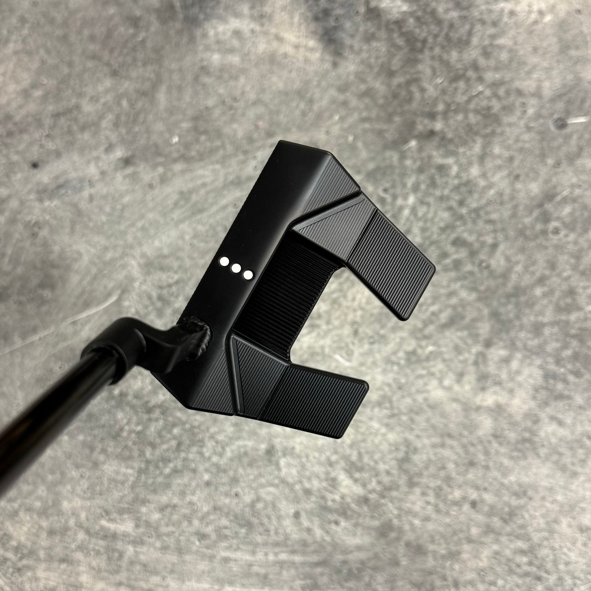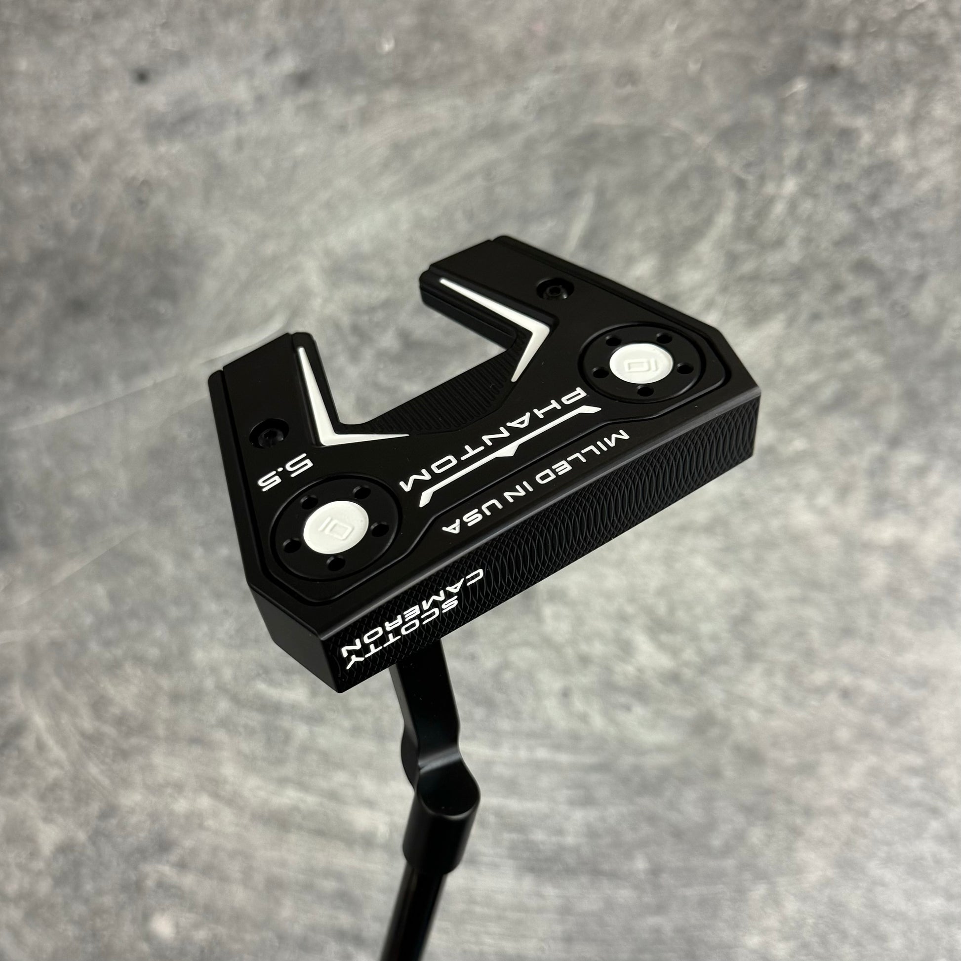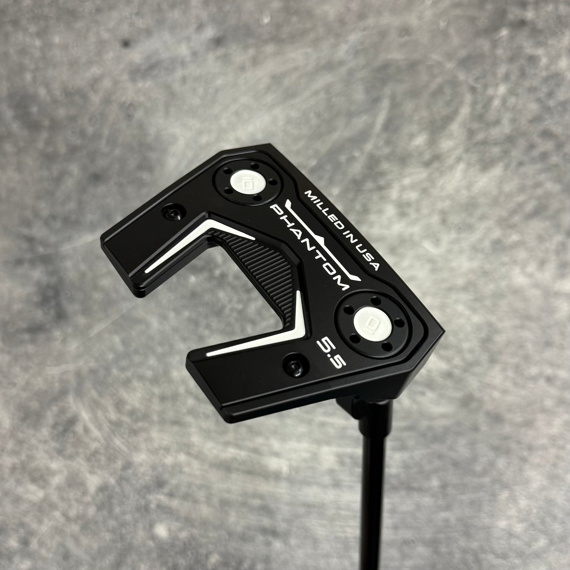 Scotty Cameron Phantom 5.5 with a welded plumbers neck. Finished in our Black PVD finish with a Black Anodized sole plate and a smoke Black shaft!