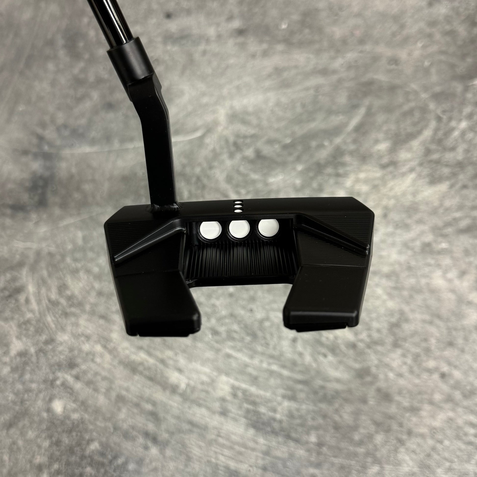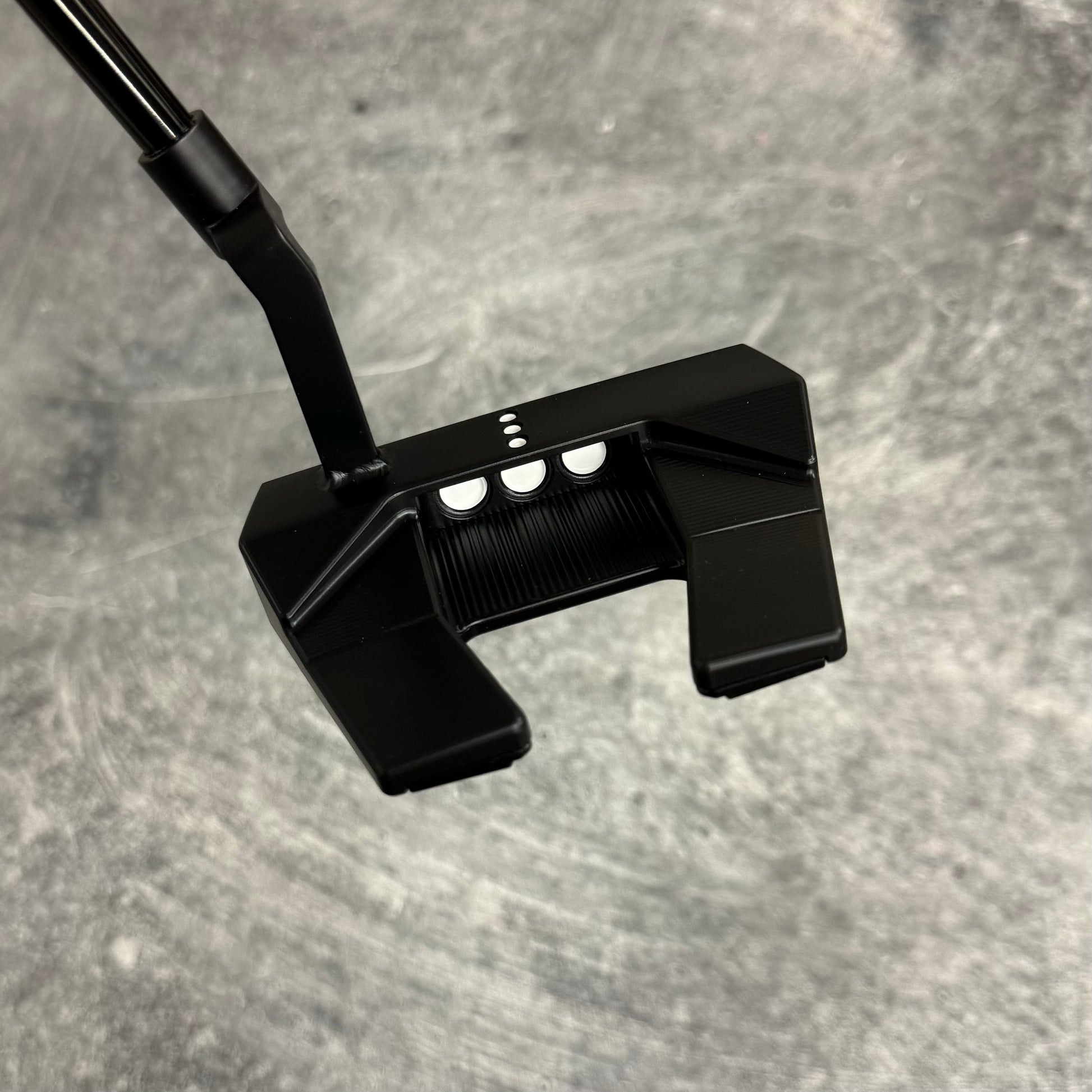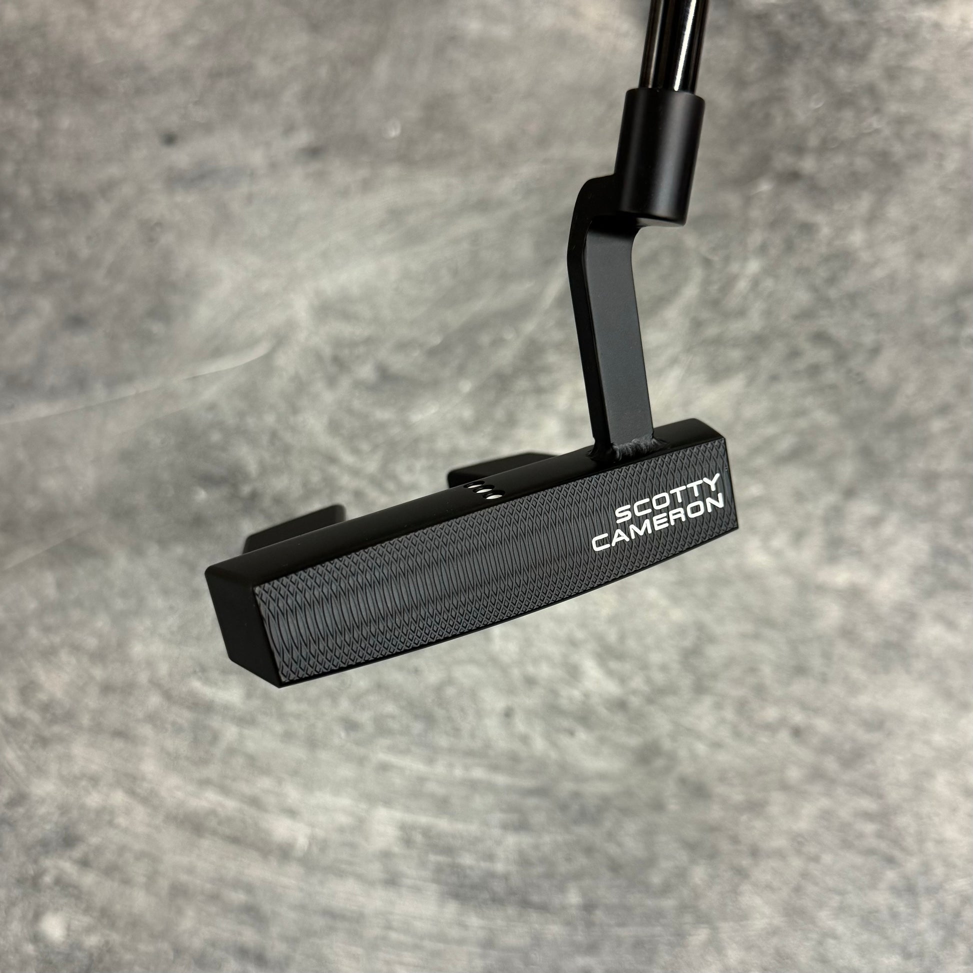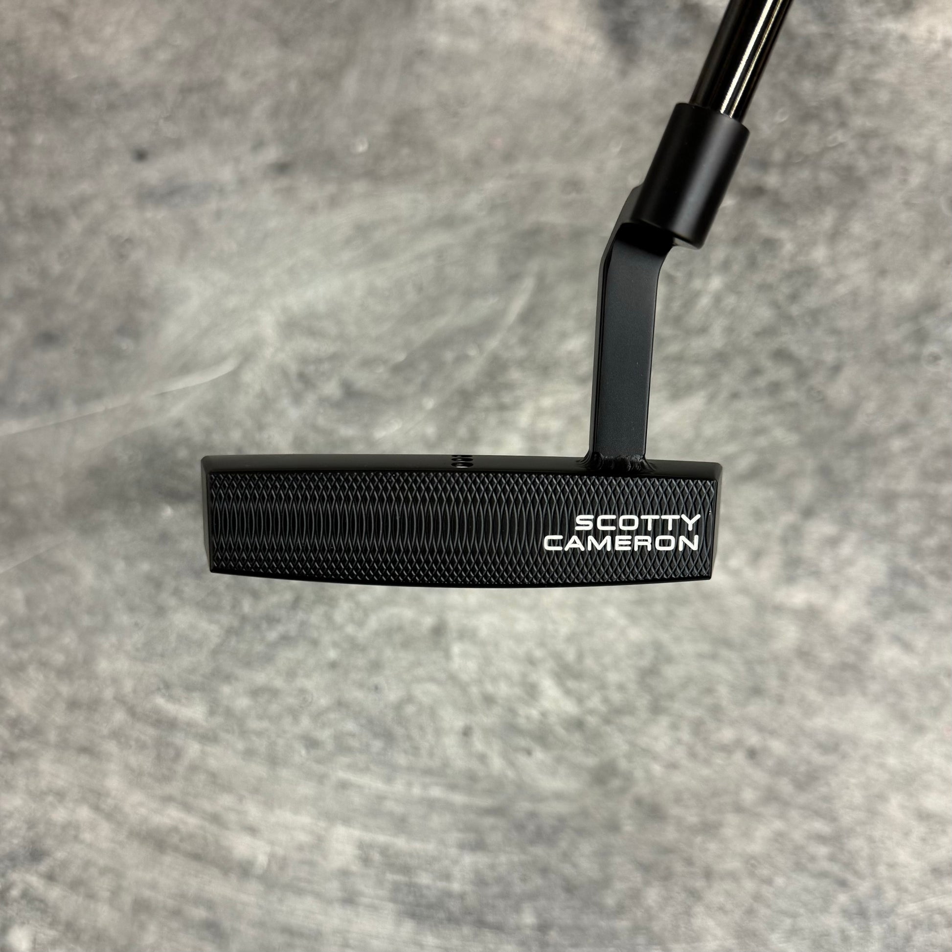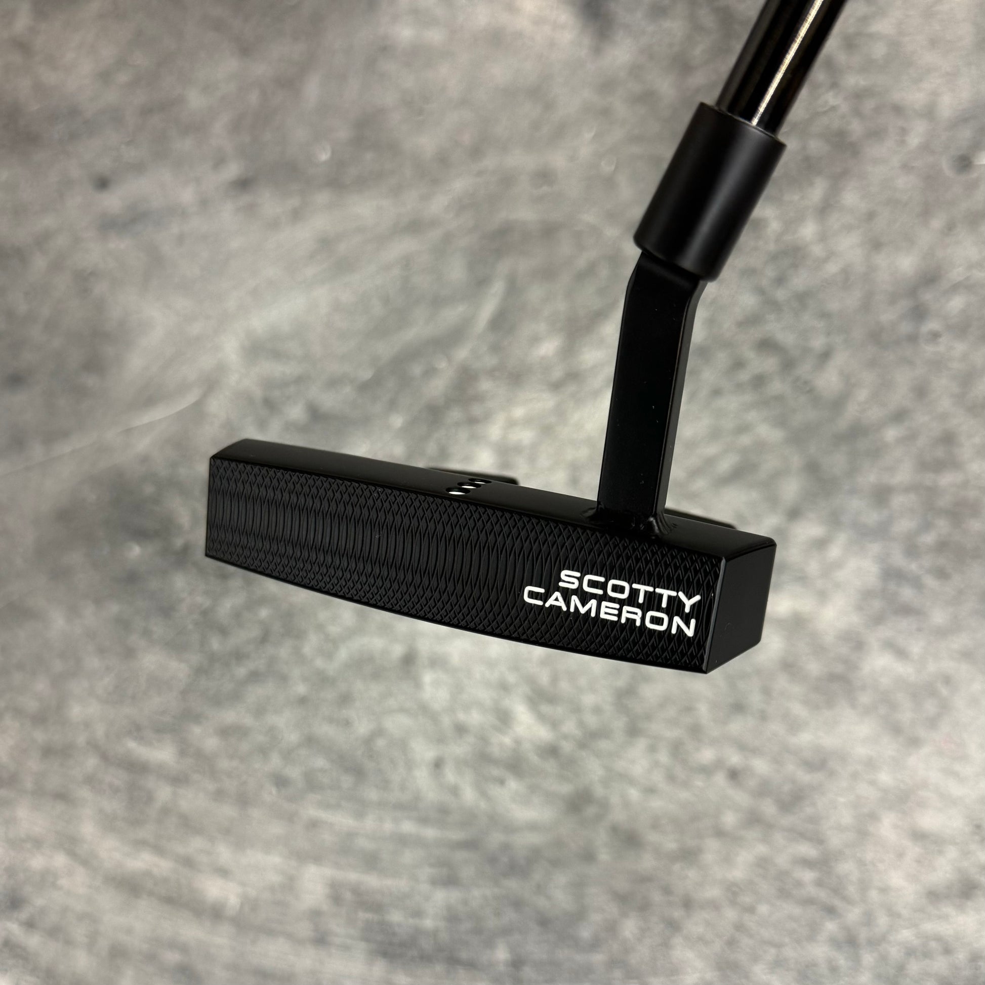 Scotty Cameron Phantom 5.5 with a welded plumbers neck. Finished in our Black PVD finish with a Black Anodized sole plate and a smoke Black shaft!
