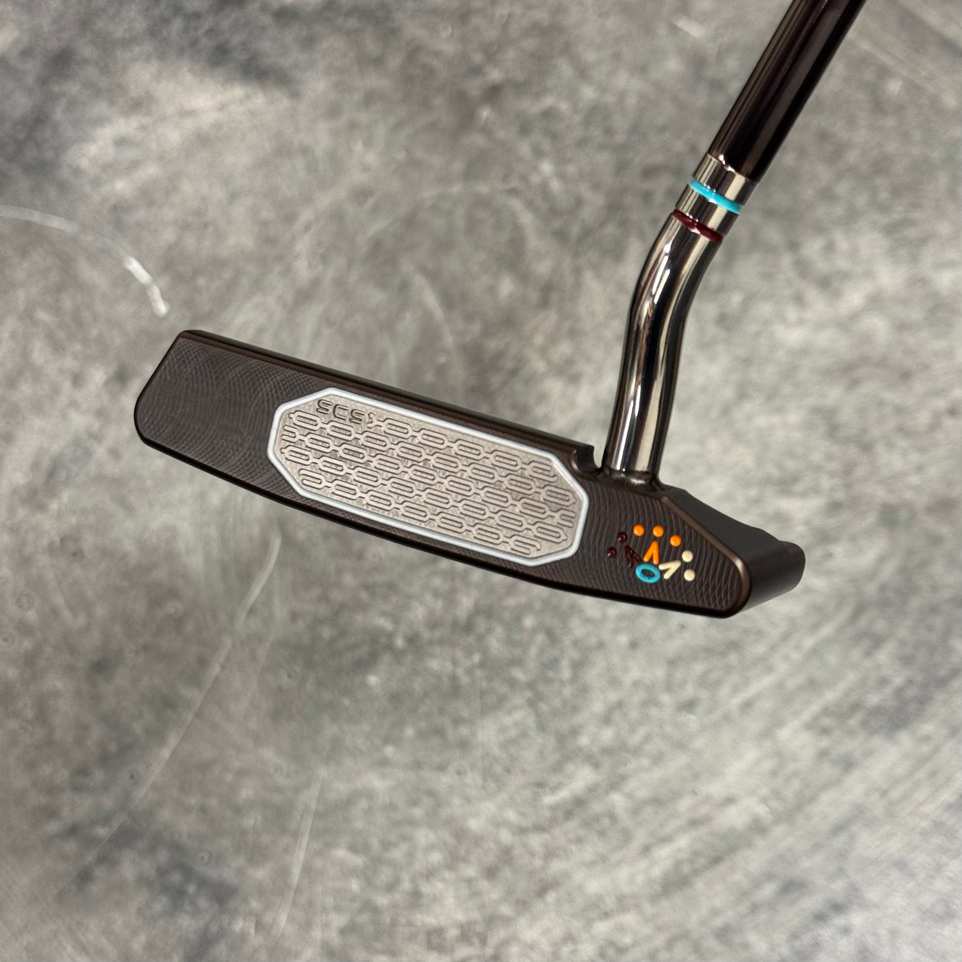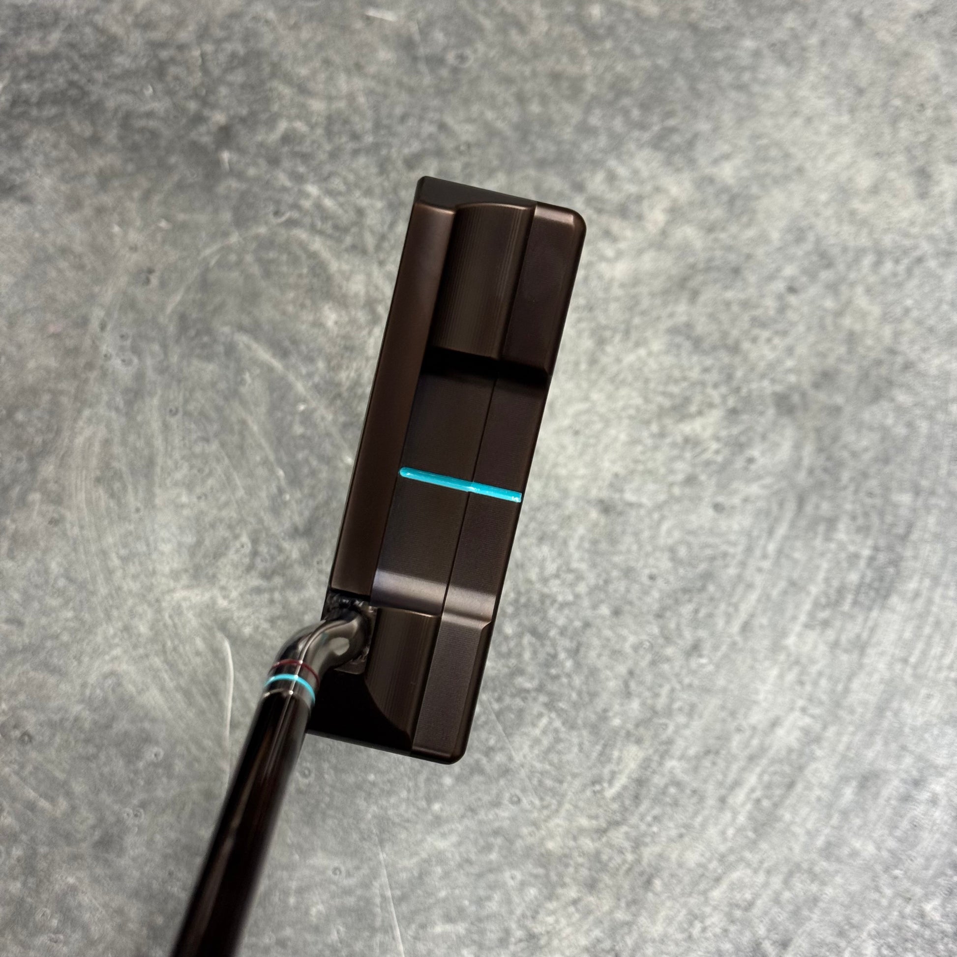 Scotty Cameron Studio Style Newport 2+ with a Polished Pipe neck. Finished in Antique Bronze PVD with a Silver sole plate and an Antique Bronze shaft!