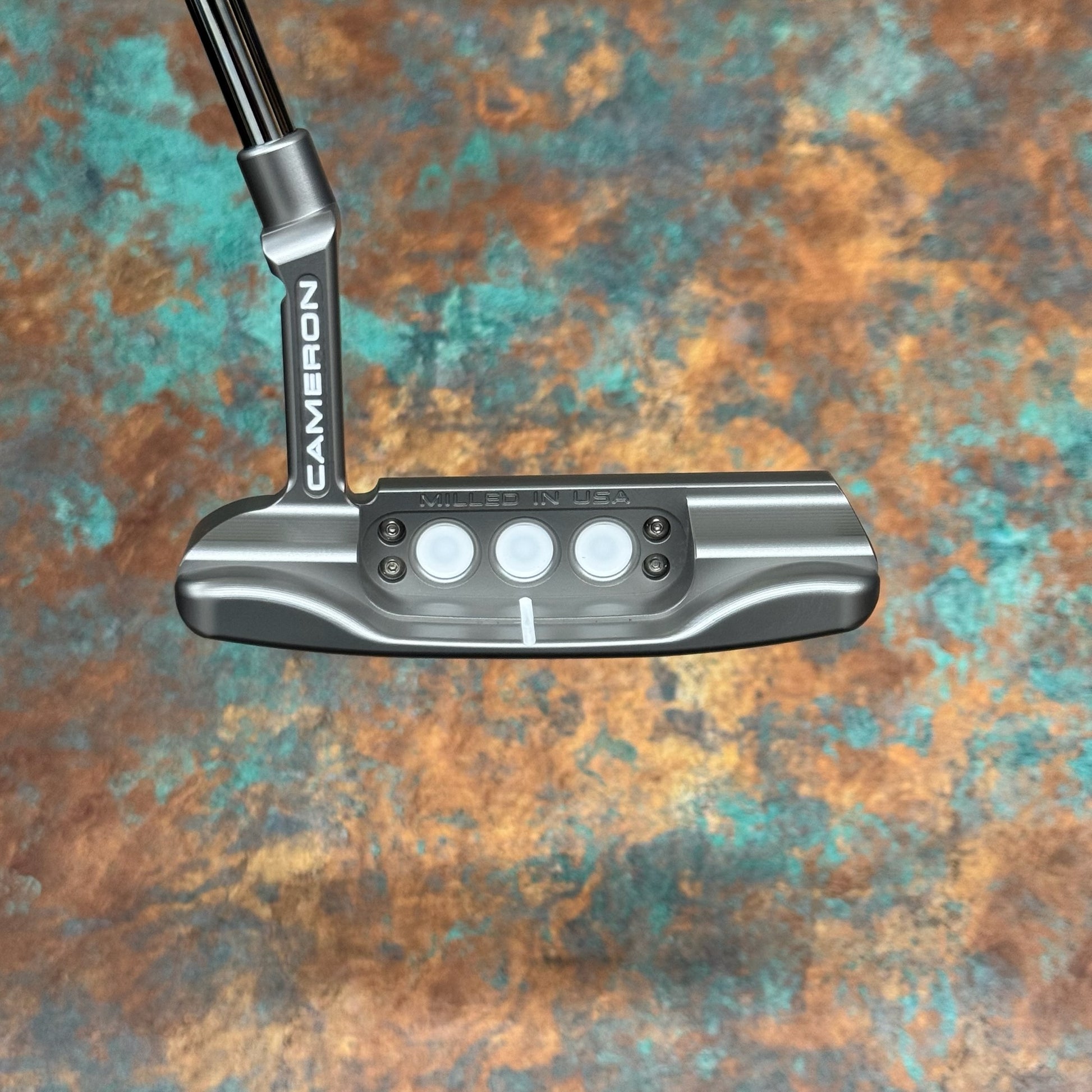 Scotty Cameron Studio Style Newport in our Tour Satin finish. With a Copper Face Insert and White Paint fill.