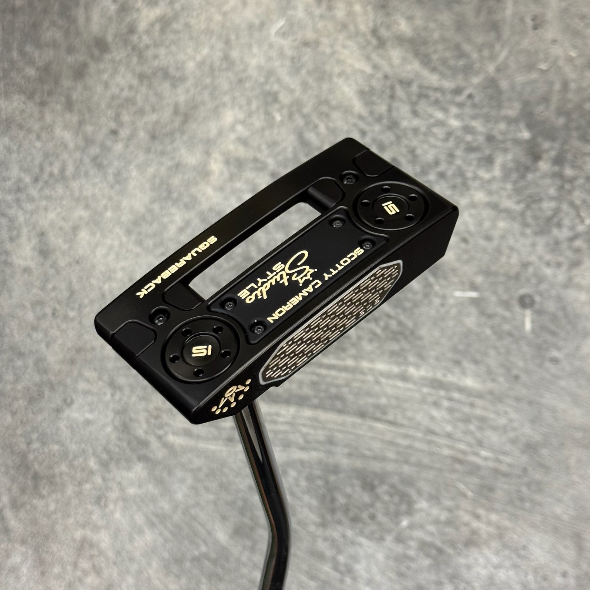 Scotty Cameron Studio Style Squareback in our Black PVD and Black Anodized. Comes with a chrome shaft!