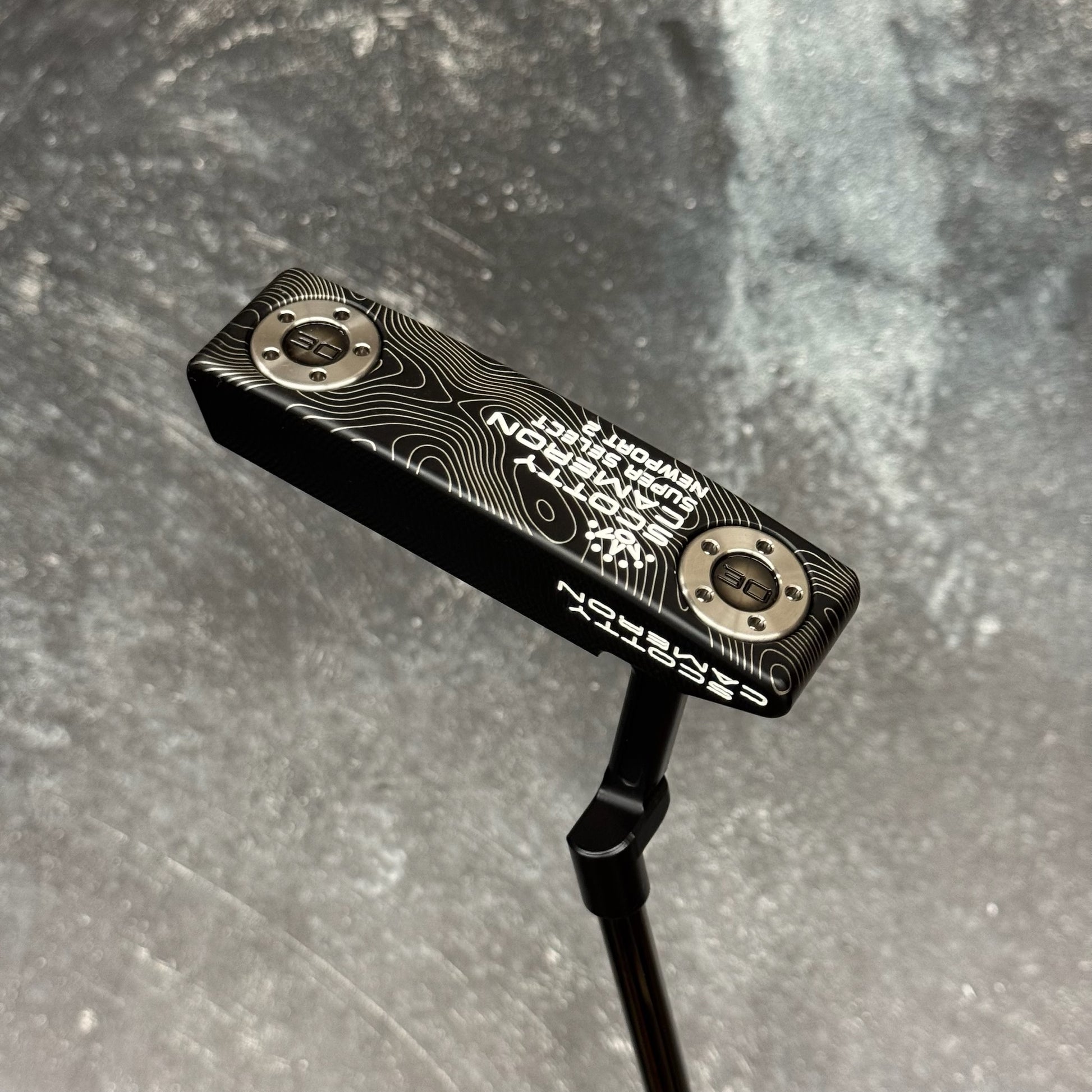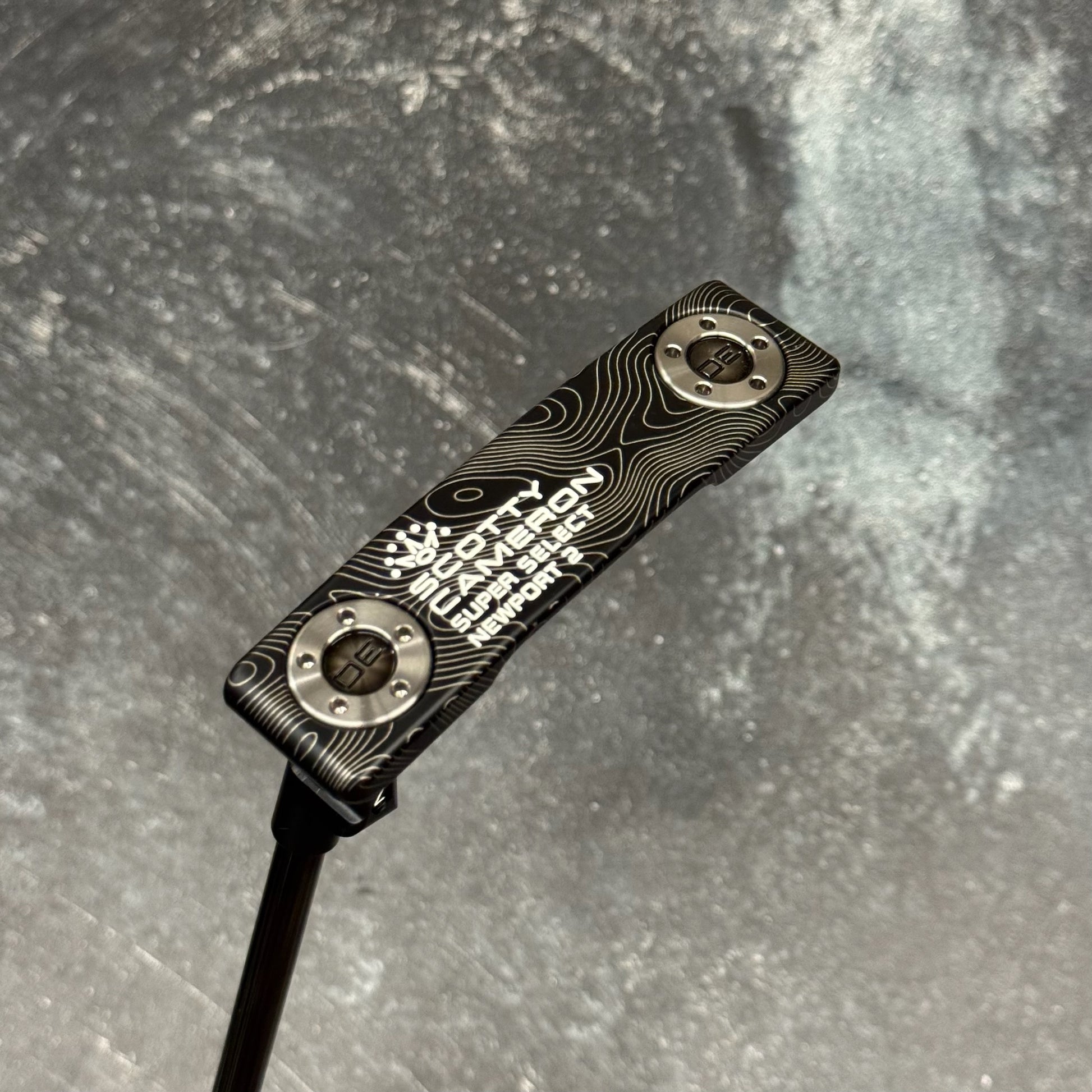 Left Handed Scotty Cameron Super Select Newport 2 finished in Black PVD with Contour Print and a Smoke Black shaft!
