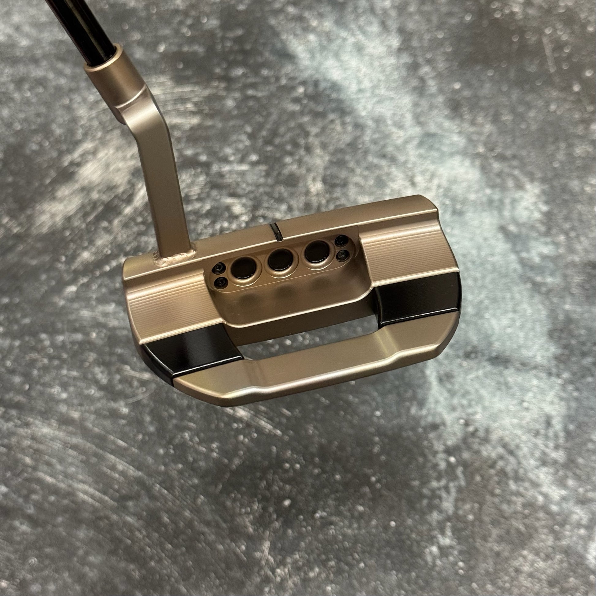 Scotty Cameron Studio Style Fastback 1.5 with a Welded Plumbers Neck finished in Rustic Torch with Black Sole Plate and Face Insert.