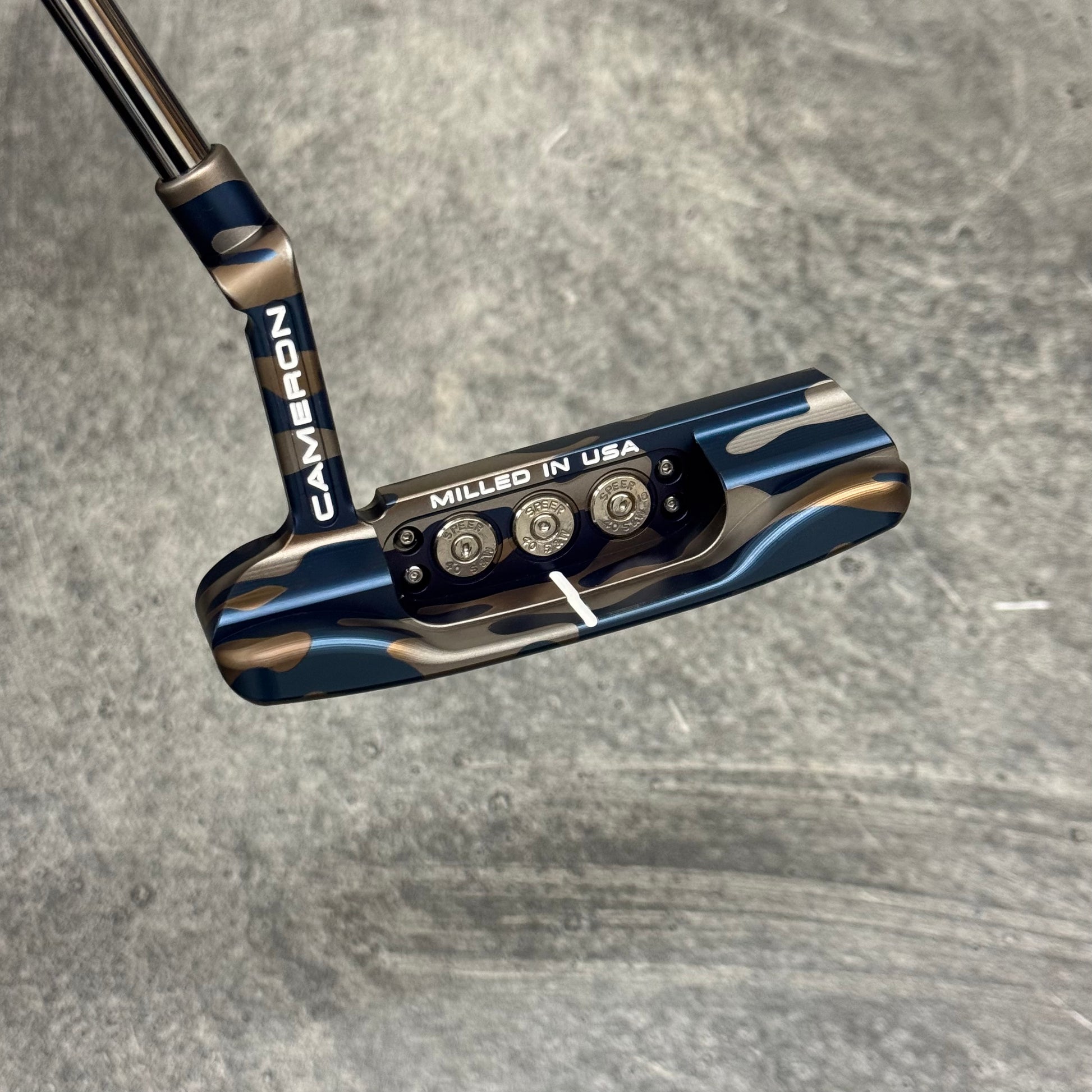 Scotty Cameron Studio Style in our Blie PVD Camo Finish with Bulletback conversion and Chrome shaft!